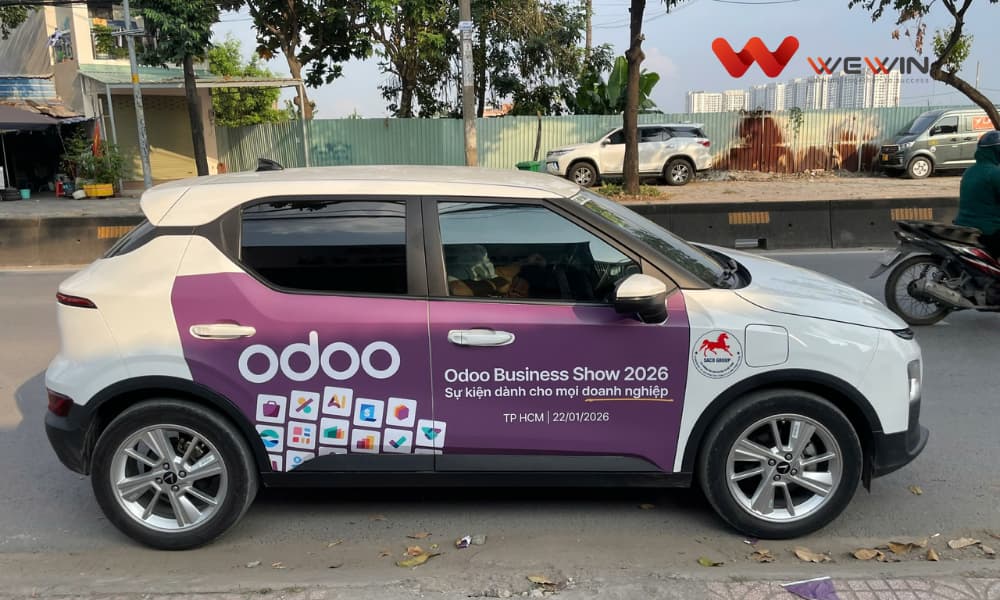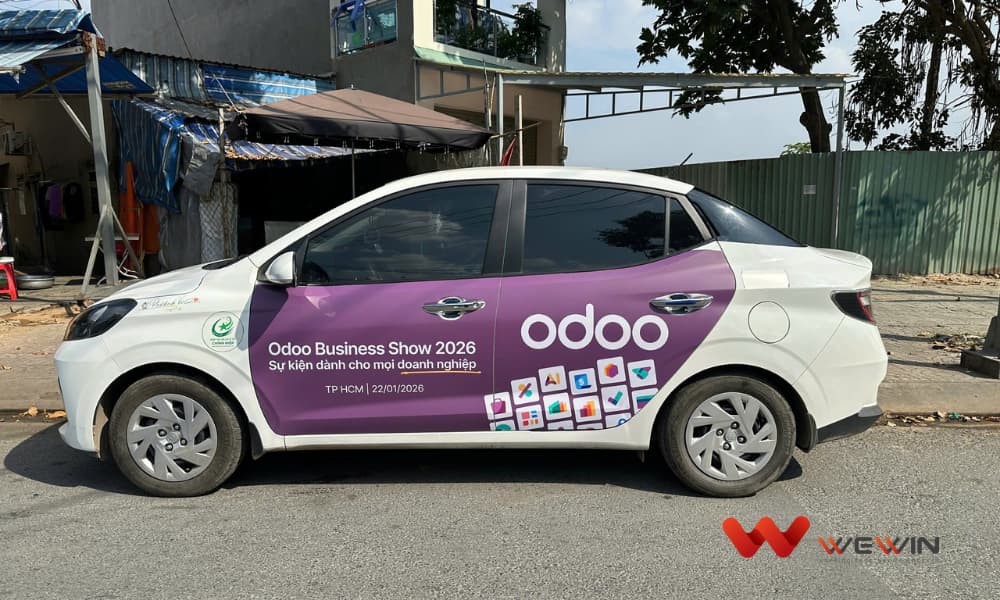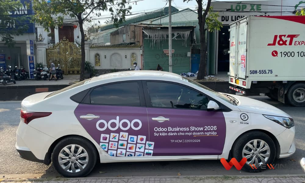 Khác với chiến dịch triển khai tại Hà Nội vào mùa hè, chiến dịch taxi Odoo tại TP.HCM được thực hiện vào dịp cuối năm 2025 – giai đoạn cao điểm của hoạt động kinh doanh, lập kế hoạch ngân sách, tái cấu trúc và chuyển đổi số doanh nghiệp. WeWin Media đã tư vấn và triển khai hình thức quảng cáo taxi công nghệ, giúp Odoo xuất hiện liên tục, linh hoạt và nổi bật trong nhịp sống đô thị sôi động của Sài Gòn.